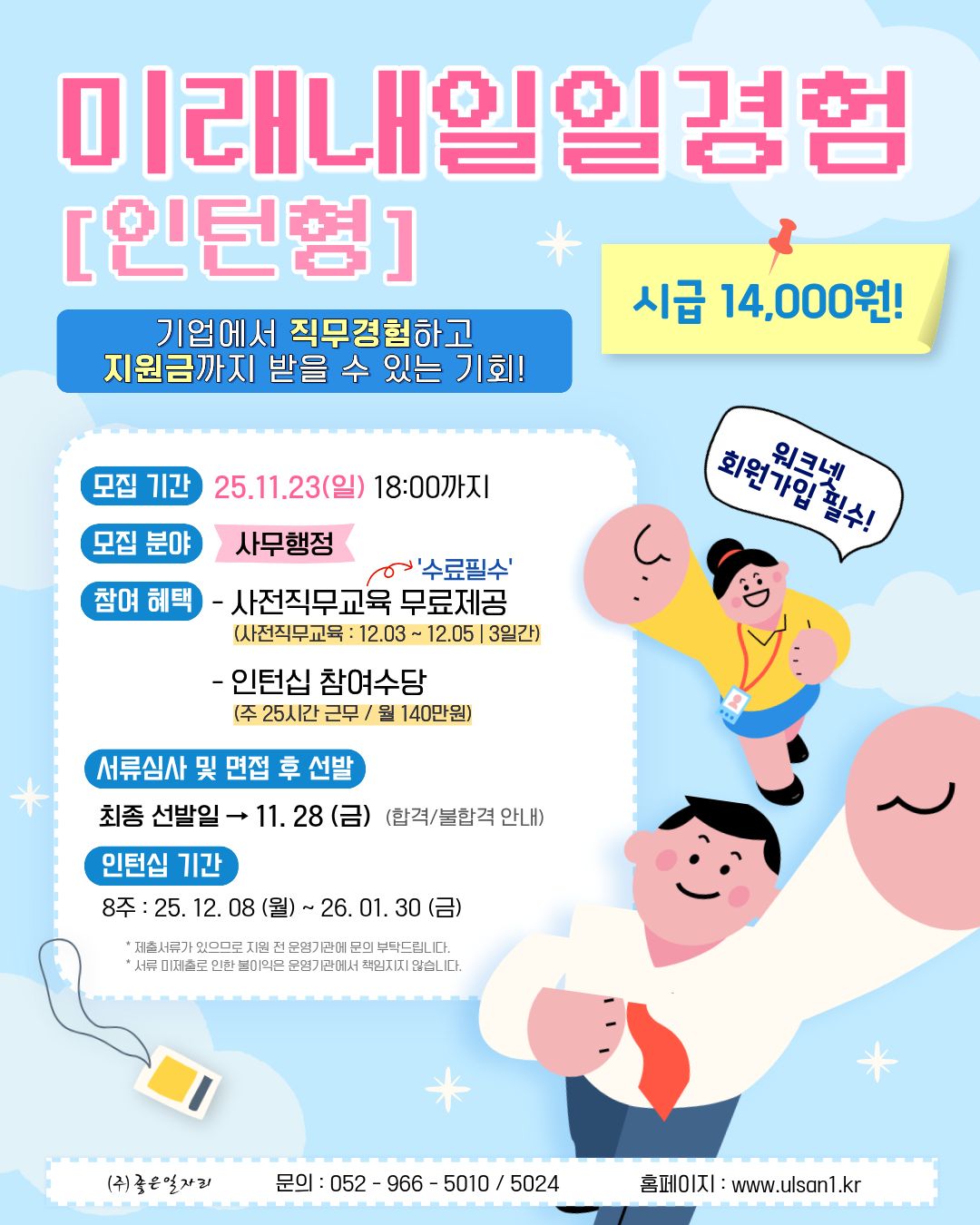 [마감] ★ 미래내일일경험 인턴형 참여자 모집안내_사무행정 (~11/23까지 모집)